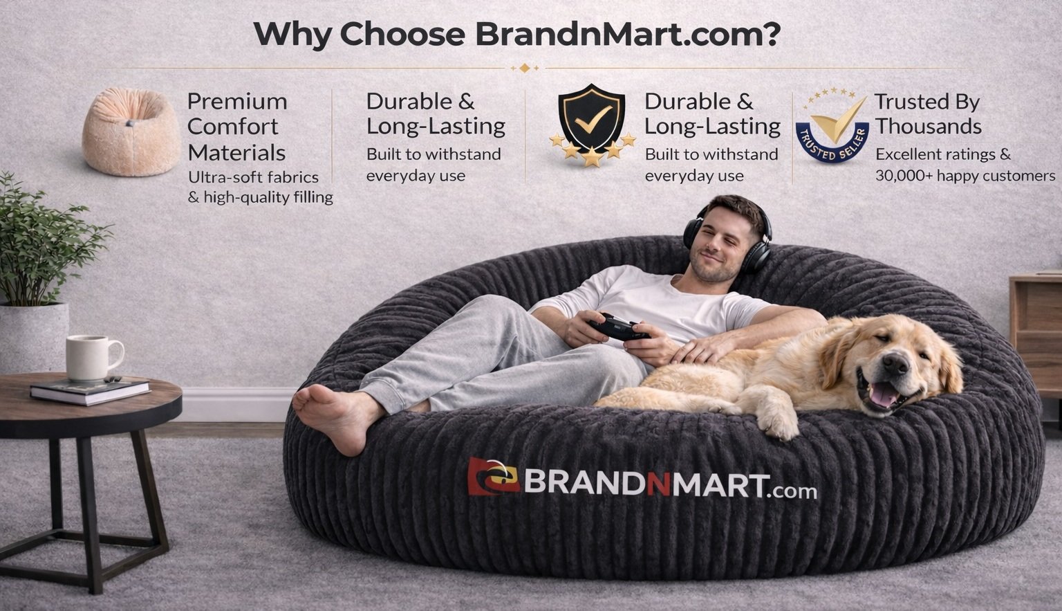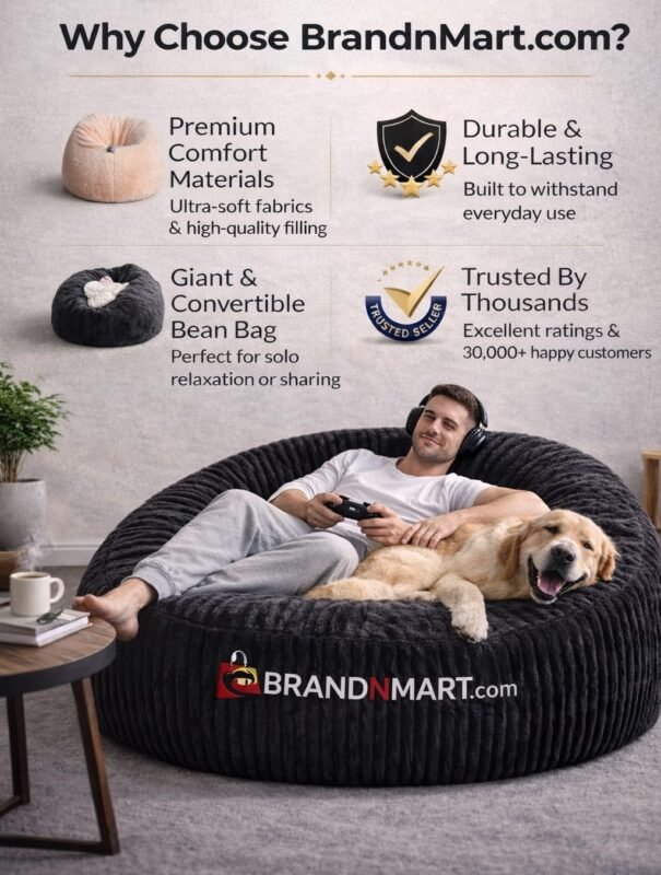 The 7 feet giant bean bag huge and incrediby soft.