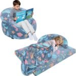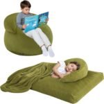 Bean Bag Chair Bed for Kids, Convertible Fairy and Dinosaur Bean Bag Folds from Lazy Chair to Floor Mattress Bed