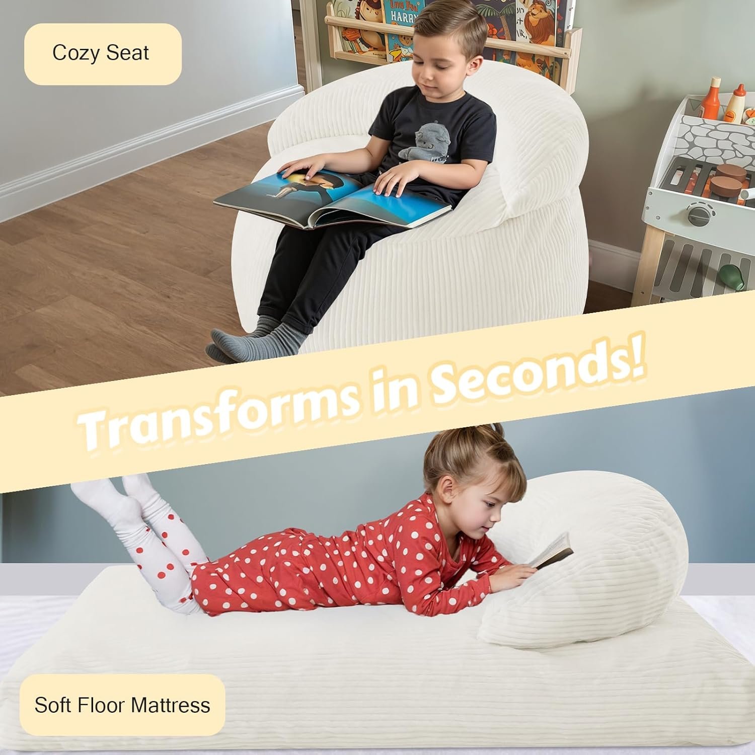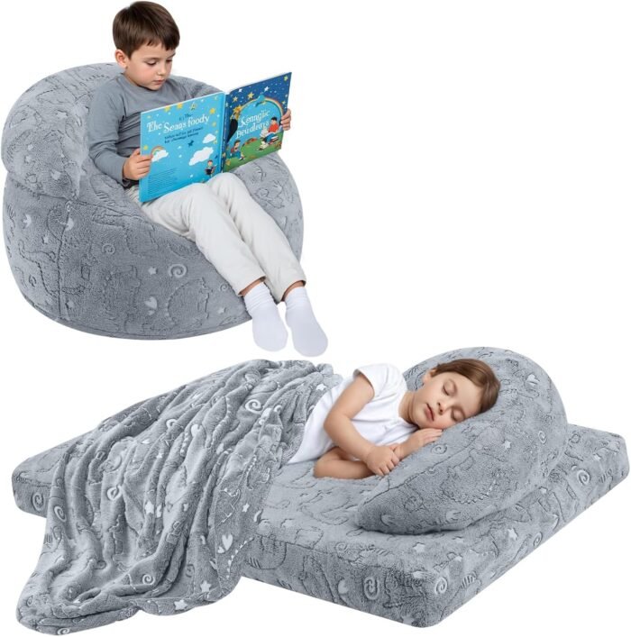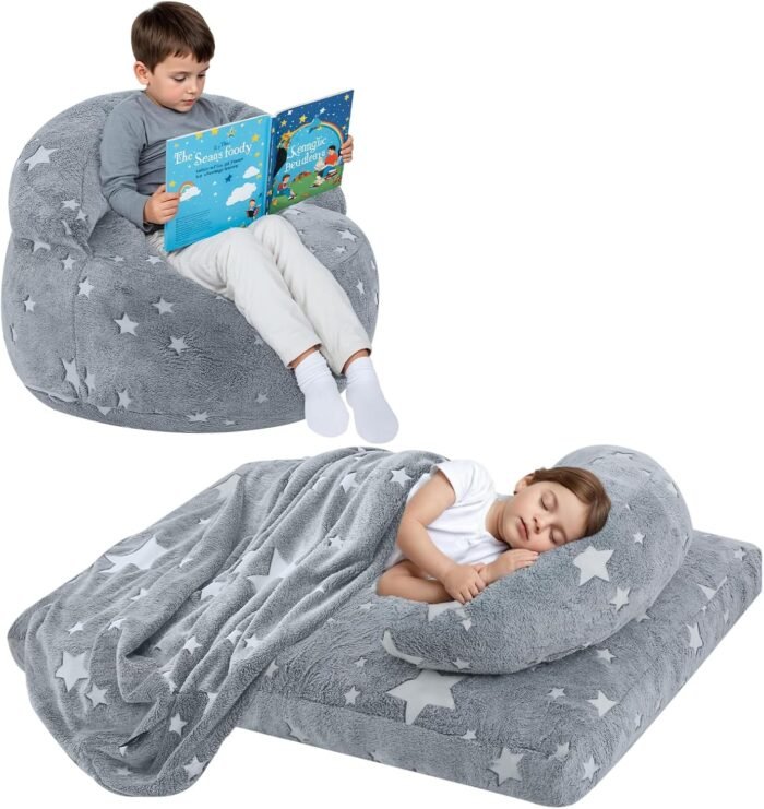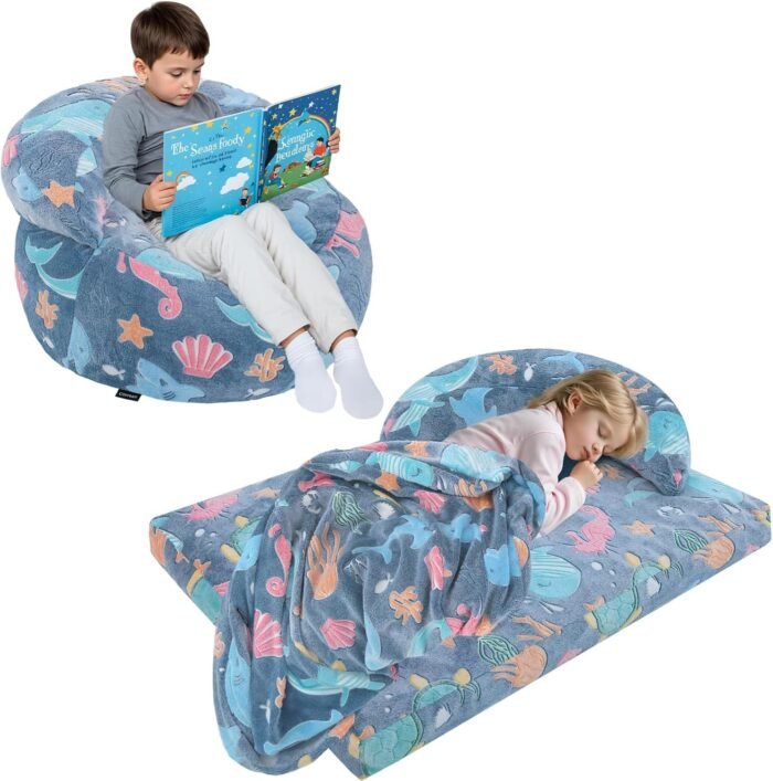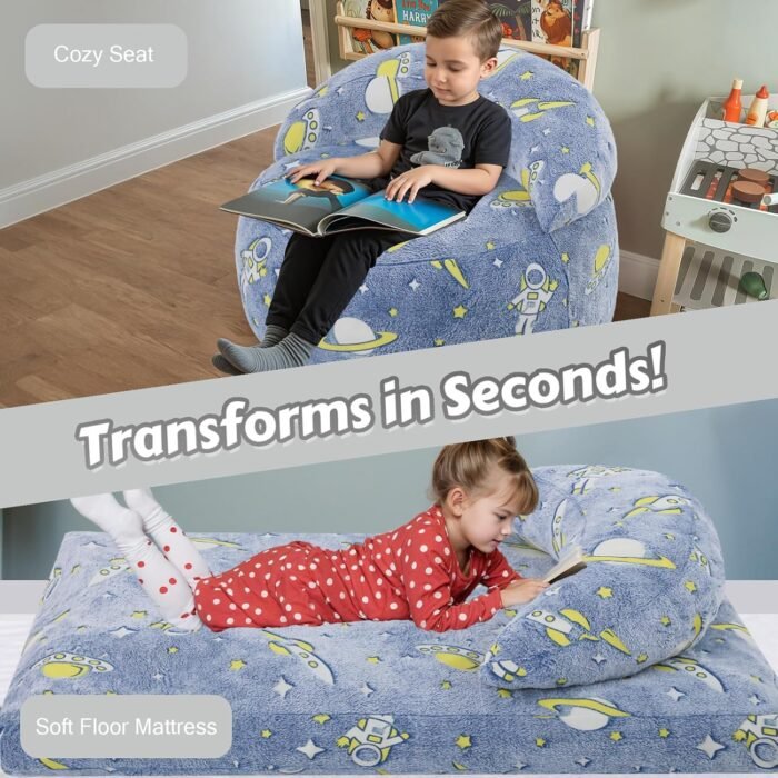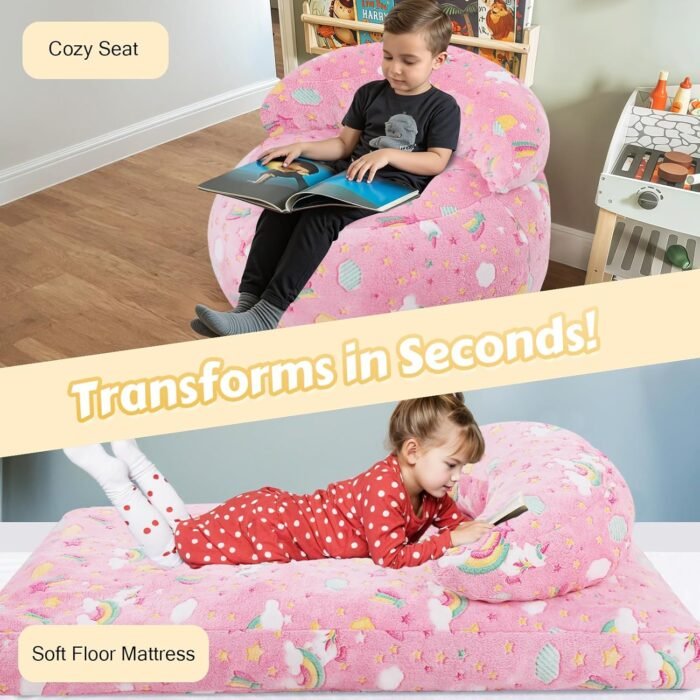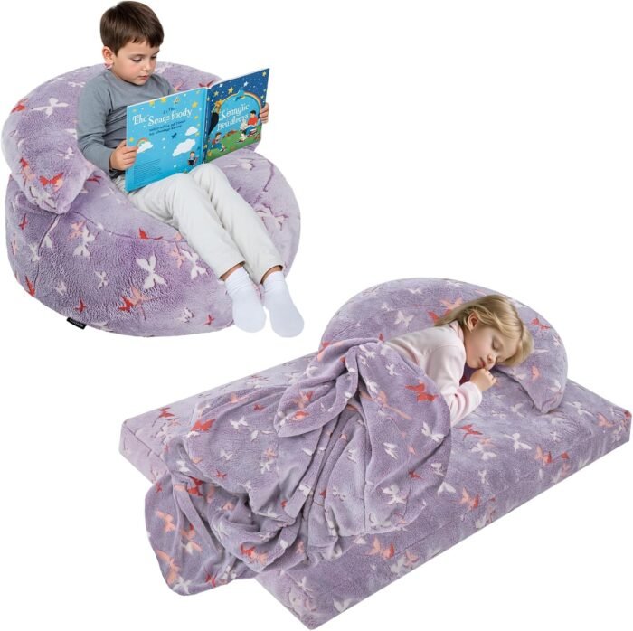 With just a simple fold or unzip, it transforms from a plush lazy chair into a full floor mattress bed, making it perfect for reading, lounging, napping, sleepovers, gaming, or quiet-time relaxation. Whether your child loves fairy magic or roaring dinosaur adventures, this bean bag turns everyday moments into exciting memories! ✨📚