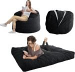 Giant Convertible Bean Bag Chair Extra Large Size With Memory Foam Filler, Folds From Chair To Mattress